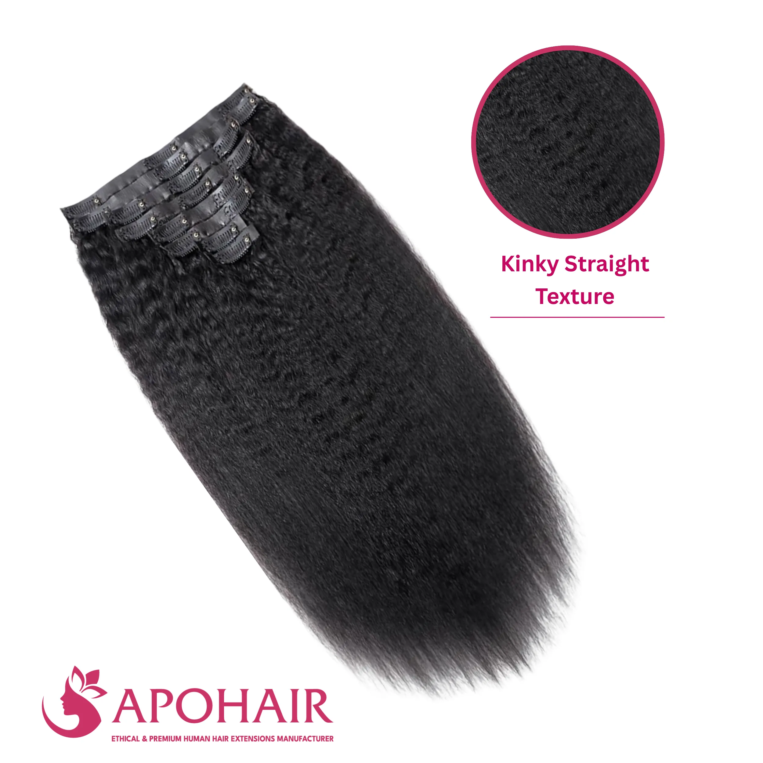 Kinky Straight Seamless Clip In Hair Extensions