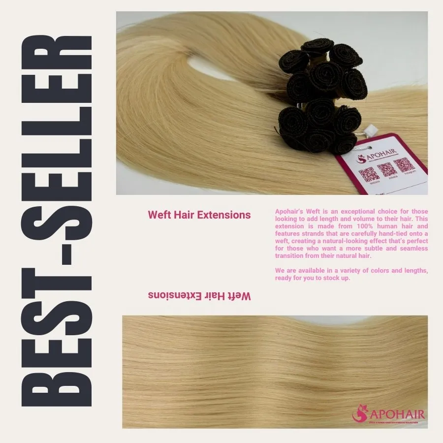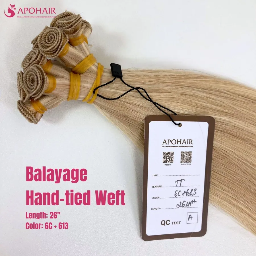 Every Hand-tied Weft Hair Extensions bundle undergoes meticulous selection and sorting by experienced workers ensuring premium quality. Our Hand-tied Weft Hair Extensions manufacturing standards exceed international requirements, backed by comprehensive quality guarantees.APOHAIR offers premium hand-tied weft extensions with two decades of expertise and global reach.